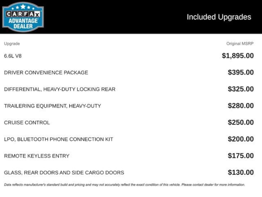 - 6.6L V8 Gas engine