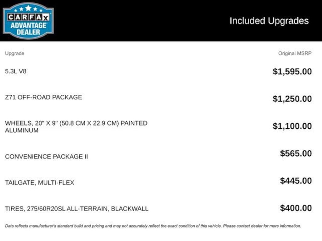 Summit White 2026 Chevrolet Silverado 1500 LT LT1 4WD 10-Speed Automatic EcoTec3 5.3L V8 NO ADDED ACCESSORIES OR UNKNOWN CHARGES!!!, 10-Way Power Driver Seat with Lumbar, 12.3 Multicolor Reconfigurable Digital Display, 120-Volt Bed Mounted Power Outlet, 120-Volt Interior Power Outlet, 40/20/40 Front Split-Bench Seat, All-Star Edition, Auto-Locking Rear Differential, Bluetooth® For Phone, Chrome Mirror Caps, Cloth Seat Trim, Color-Keyed Carpeting Floor Covering, Convenience Package, Convenience Package II, Deep-Tinted Glass, Dual Exhaust with Polished Outlets, Dual Rear USB Ports (charge Only), Dual-Zone Automatic Climate Control, Electric Rear-Window Defogger, Electronic Cruise Control, EZ Lift Power Lock and Release Tailgate, Front Frame-Mounted Black Recovery Hooks, Front Rubberized Vinyl Floor Mats, HD Rear Vision Camera, Heated Driver and Front Outboard Passenger Seats, Heated Power-Adjustable Outside Mirrors, Heated Steering Wheel, Heavy-Duty Air Filter, Hill Descent Control, Hitch Guidance, Hitch Guidance with Hitch View, in-Vehicle Trailering System App, Inside Rearview Mirror with Tilt, Integrated Trailer Brake Controller, Keyless Open and Start, LED Cargo Area Lighting, Manual Tilt/Telescoping Steering Column, Off-Road Suspension, OnStar Services Capable, Power Front Windows with Driver Express Up/Down, Power Front Windows with Passenger Express Down, Power Rear Windows with Express Down, Power Sliding Rear Window with Rear Defogger, Preferred Equipment Group 1LT, Rear 60/40 Folding Bench Seat (folds Up), Rear Rubberized-Vinyl Floor Mats, Remote Start Package, Remote Vehicle Starter System, SiriusXM with 360L Trial Subscription, Standard Suspension Package, Standard Tailgate, Steering Wheel Audio Controls, Teen Driver, Theft Deterrent System (unauthorized Entry), Tire Pressure Monitoring System, Trailering Package, Universal Home Remote, Wheels: 17 x 8 Bright Silver Painted Aluminum, Wheels: 18 x 8.5 Bright Silver Painted Aluminum, Wi-Fi Hot Spot Capable, Wrapped Steering Wheel, Z71 Off-Road Package. See Dealer for Details, Price includes: $1000 - Trade Assistance. Exp. 03/02/2026 $1500 - Bonus Cash. Exp. 03/02/2026 $3250 - Customer Cash. Exp. 03/02/2026 MUST TRADE A 2018 OR NEWER WITH UNDER 125,000 MILES AND MUST HAVE CLEAN TITLE IN RUNNING CONDITION Price includes $9,895 of dealer added accessories.