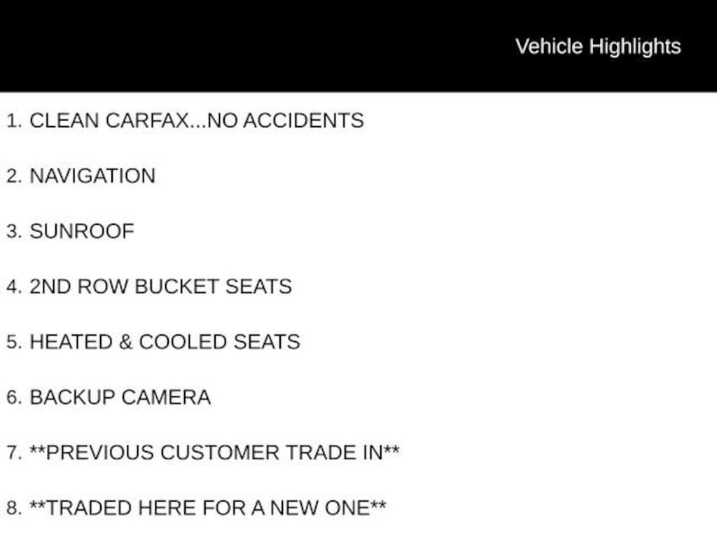 Recent Arrival! CLEAN CARFAX...NO ACCIDENTS, NAVIGATION, SUNROOF, 2ND ROW BUCKET SEATS, HEATED & COOLED SEATS, BACKUP CAMERA, **PREVIOUS CUSTOMER TRADE IN**, **TRADED HERE FOR A NEW ONE**, NO ADDED ACCESSORIES OR UNKNOWN CHARGES!!!, 12-Way Power Driver & Passenger Seat Adjusters, 15 Diagonal Multi-Color Head-Up Display, 1st & 2nd Row Color-Keyed Carpeted Floor Mats, 2 USB Data Ports, 2-Speed Active Electronic AutoTrac Transfer Case, 3rd Row 60/40 Power-Folding Split-Bench, Automatic Heated Steering Wheel, Bose 10-Speaker Surround w/CenterPoint, Bright Front & Rear Door Sill Plates, Chrome Door Handles w/Body-Color Strip, Color-Keyed Carpeting Floor Covering, Driver & Front Outboard Passenger Airbags, Dual Exhaust System, Enhanced Driver Information Center, Floor Console w/Storage Area, Front & Rear Park Assist, Hands-Free Rear Power Programmable Liftgate, HD Radio, HD Surround Vision, Heated & Ventilated Driver & Front Passenger Seats, Heated 2nd Row Outboard Seats, Heated Driver & Front Passenger Seats, Hill Descent Control, Infotainment Display, Inside Rearview Auto-Dimming Rear Camera Mirror, Lane Change Alert w/Side Blind Zone Alert, Lane Keep Assist w/Lane Departure Warning, Leather-Wrapped Steering Wheel, LED Daytime Running Lamps, Memory Settings, Navigation System, Outside Heated Power-Adjustable Mirrors, Power Release 2nd Row Bucket Seats, Power Tilt & Telescopic Steering Column, Preferred Equipment Group 3LZ, Rear Camera Mirror Washer, Rear Cross Traffic Alert, Rear Pedestrian Alert, Remote Start, Safety Alert Seat, SiriusXM Radio w/360L, Universal Home Remote.
